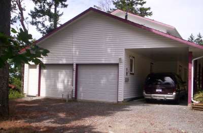 garages is a semi-enclosed carport with a high ceiling and over-height