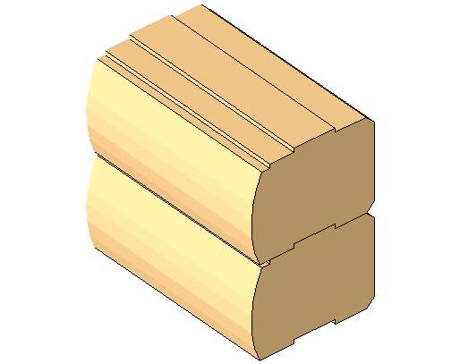The following pictures are examples of some of the various log profiles used in our Logmaker program. These examples demonstrate the saddle-notch approach to corner joinery (with half-logs top or bottom), however, 'dovetail corners or 'butt & pass' styles are also available.
